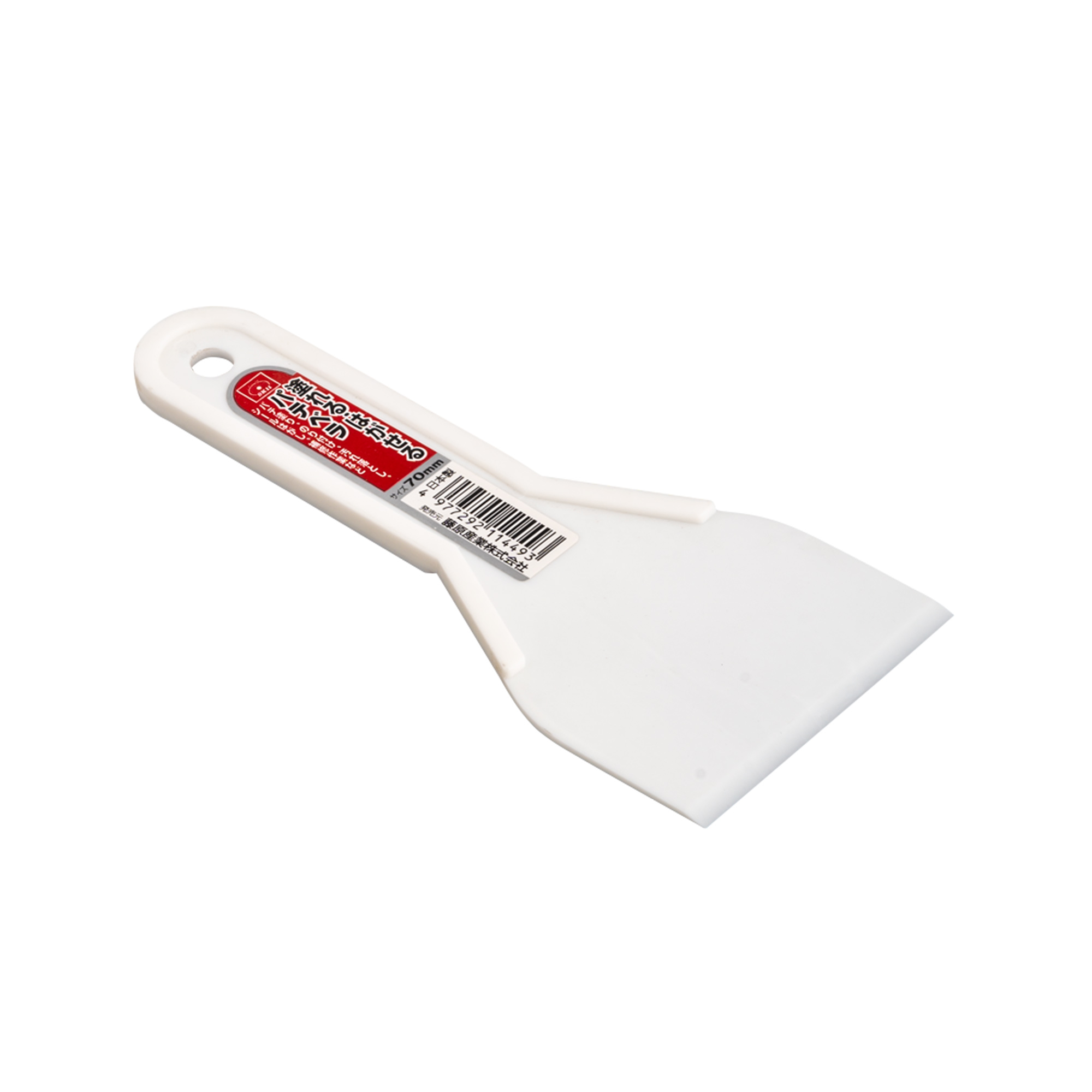 Espátula fina de 70 mm. de cierta rigidez para texturización y realizaciones en pequeños espacios en fresco sobre revestimientos decorativos de última capa.