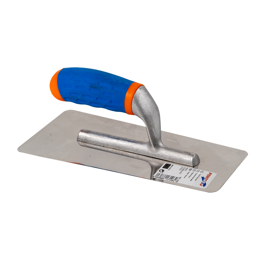 Llana trapezoidal de inox. de punta cuadrangular y de 240 mm de longitud y 0,6 mm. de grosor. Herramienta cantos de hoja redondeados que proporciona un acabado perfecto sin rayar. Su hoja biselada, así como el pulido de espejo por ambas caras facilitan un abrillantado del estuco más rápido. Mango bimateria para mayor comodidad y ergonomía.